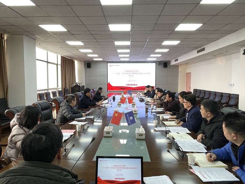 1月10日下午,学校在正德楼1112会议室召开芜湖职业技术学院“一站式”学生社区综合管理模式建设实施方案研讨会。校党委副书记袁家和,相关职能部门负责人参加会议。会议由学生处副处长王璐璐主持。