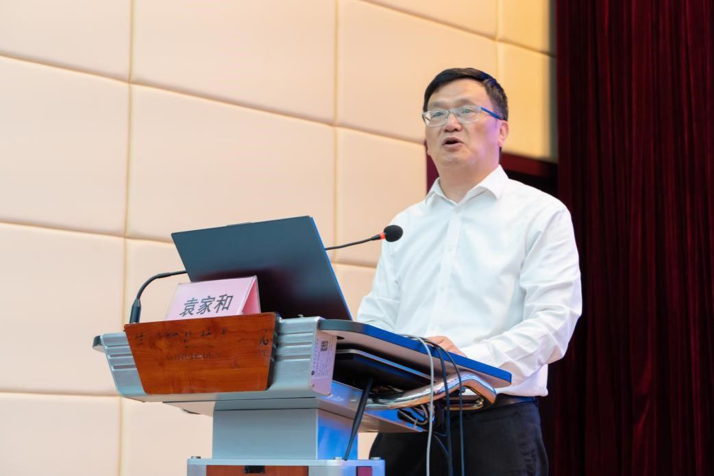 袁家和做启动仪式致辞,他首先介绍了学校近年来在心理健康教育工作中构建的“连心、暖心、润心、护心、强心”五心工程。他着重强调了心理健康教育工作应围绕以下五个方面展开:一是注重预防,拧紧心理健康“安全阀”;二是加强互动,搭建家校共育“连心桥”;三是建设队伍,守好心理健康“责任田”;四是早期干预,当好化解危机“排头兵”;五是强化赋能,做好培育积极心态的“领航员”。他指出,在当今社会竞争日益激烈、信息过载以及多元价值观碰撞等挑战加剧的背景下,许多同学时常感到焦虑与迷茫,甚至陷入“躺平”与“内卷”的矛盾心态之中。而汲古涵今,润心塑人,能够为应对这些挑战提供重要的破局思路。最后,袁家和希望同学们能够做到积极向上、自尊自信,使青春既充满奋发向上的锐气,又具备从容自在的底气。